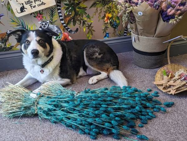On occasion, you may even be greeted by our shop mascot and beloved, gentle, four-pawed family member, Luna. She became so popular with our customers that she now has her own merchandise available in our shop!